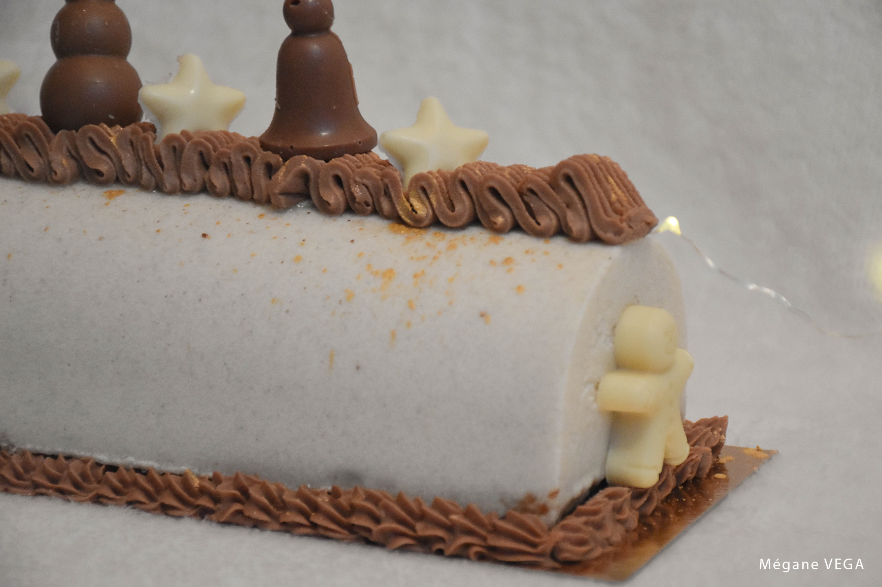 - Une fois la bûche bien congeler la démouler et la placer sur une plat ou une carton doré.